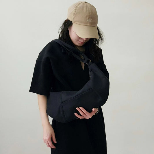 黑色牛仔布打結旅行漂流人包BLACK DENIM HOBO BAG 背帶加長