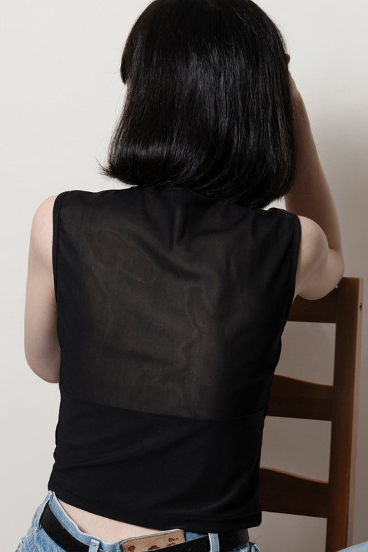 SHEER BACK VEST TOP 簍空後背網布拼接彈性上衣